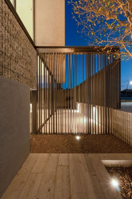 En cuanto a la vegetación, la casa cuenta con Phornium Tenax, lavanda, salvia azul y Grevillea.