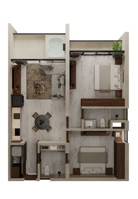 • Terraza privada con acceso exclusivo al rooftop, ideal para disfrutar del clima caribeño.