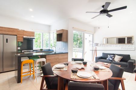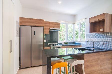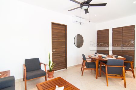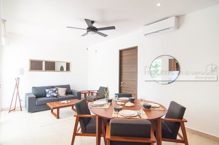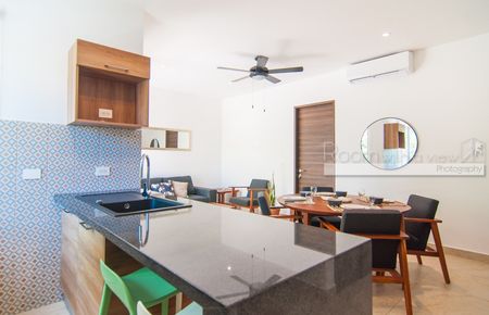 Este iluminado y ventilado departamento de 2 recámaras y 2 baños ofrece con un diseño de concepto abierto, abundante luz natural y un balcón privado con vista a la selva. Incluye una moderna cocina equipada con electrodomésticos de alta gama, sala y comedor bañados de luz natural, y recámara tipo lock-off con cocineta para mayor flexibilidad y potencial de renta. Los propietarios y sus huéspedes disfrutarán de la amplia terraza rooftop con alberca infinity, camastros, área de asador y vistas parciales al mar.