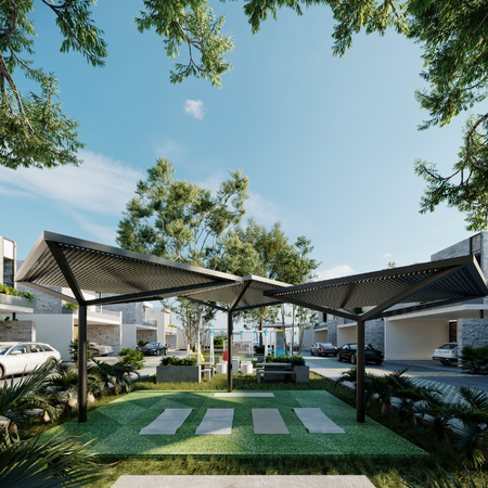 • Cochera techada para 3 vehículos.
