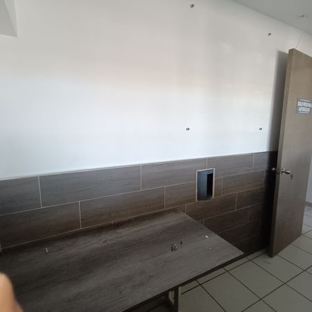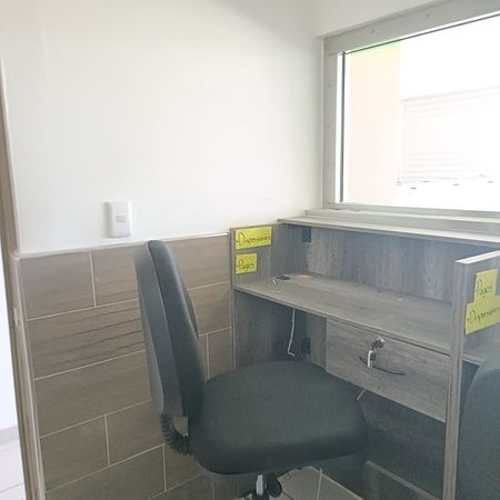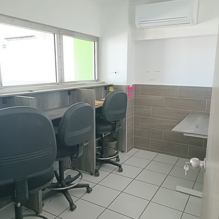 - Oficina 2: escritorio en "L", silla ejecutiva, 2 sillas de visita, A/A Área de café y descanso: