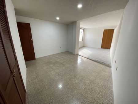 Actualmente el piso cuenta con estacionamiento para 2 autos, recepción y área común, cuarto con terraza y baño, cuarto con terraza, cuarto con bodega, baño común, cocina, bodega y terraza o patio.