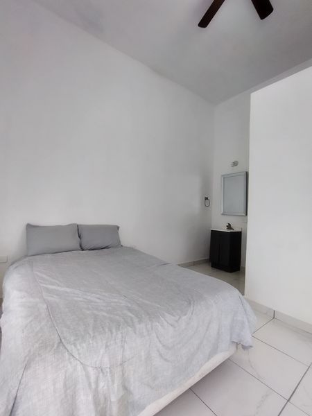 Disfruta de la comodidad de una habitación privada, con aire acondicionado y baño propio, dentro de un espacio moderno y tranquilo. Áreas comunes: cocina equipada, comedor.