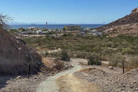 Amplio terreno en venta en zona exclusiva, con alta plusvalía y valor actual en La Paz. Con vista al mar desde su primer nivel y conexión cercana a servicios de luz y agua.