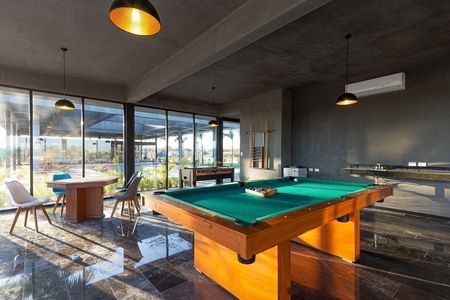 Área de recreación con Pantalla gigante, mesa de billar y mesa de cartas
