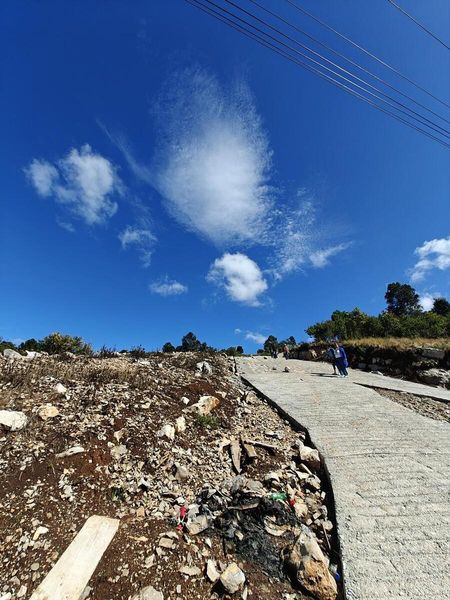 - Calle pavimentada de 8 metros con rodadas de cemento y aceras