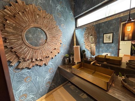 Medio baño de visitas, cocina recién remodelada de súper lujo con alacena, recámara y baño de servicio y área de lavado.