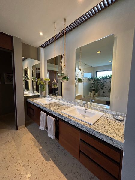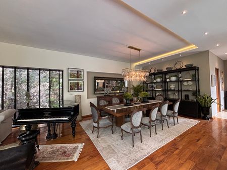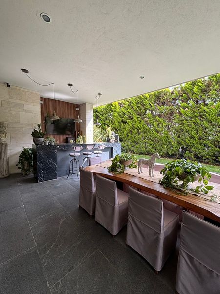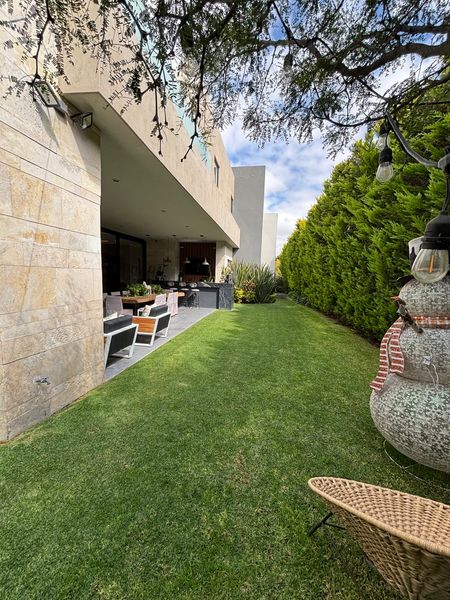 La casa tiene acabados de lujo como mármol exótico en gran formato, además de maderas naturales en las recámaras, aires acondicionados de frío/calor, paneles solares, cámaras de seguridad, riego por aspersión.