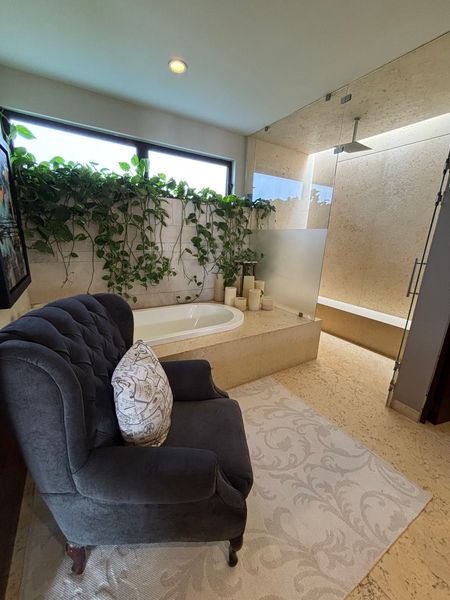 Recámara principal Amplia, con espacio para sala de lectura, Walk-in Closet de diseño y baño con doble lavabo y regadera tipo lluvia, además de una preciosa tina.