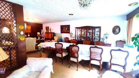 Cuenta con una superficie de 190 m2 de terreno y 290 m2 de construcción en 2 niveles, con 3 grandes recámaras, 2 baños y medio, amplia sala, comedor, antecomedor, recibidor con chimenea, cocina integral, terraza, jardín, cuarto de servicio y estacionamiento para 1 auto.