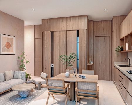 MAKAI combina arquitectura moderna, materiales naturales y un ambiente relajado. Cada espacio fue diseñado para ofrecer luz natural, ventilación cruzada y confort térmico, integrándose con la estética cálida y urbana de Versalles.