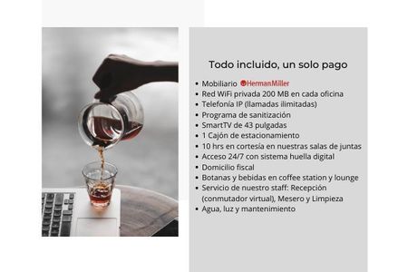 Oficina Todo Incluido 2 privados-area abierta y 2 estacionamiento en Santa Fe