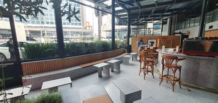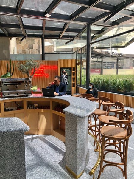 Variedad de bebidas en área de lounge.