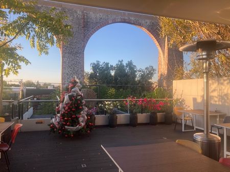 Agradable oficina para dos personas en renta frente a los Arcos. Disfruta de la terraza comunitaria con vista inigualable a los Arcos ! Con excelente ubicación.