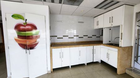 La oficina tiene 200 m2 y cuenta con un área abierta que puedes adaptar según las necesidades de tu negocio, además de una cocineta y baño privados para mayor comodidad.