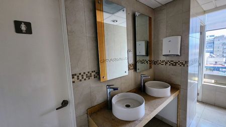 En el edificio también hay baños para hombres y mujeres en cada piso. Si necesitas más espacio, existe la posibilidad de unir esta oficina con la de junto y llegar a los 400 m².
