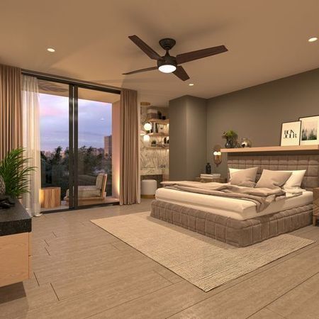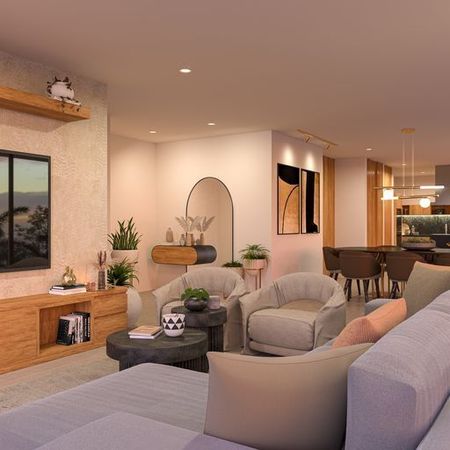 Cocina, sala-comedor, alacena, área de lavado, 1/2 baño de visitas, terraza, estudio, 2 recámaras con closets y baños completos, recámara principal con closet vestidor y baño completo con doble lavabo.