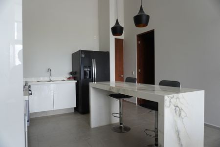 • Cocina abierta equipada con carpintería, isla y estufa de gas