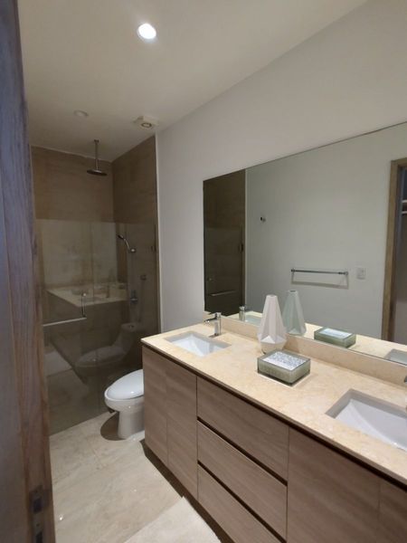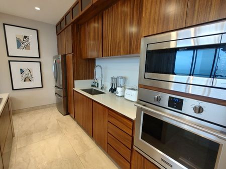 También tiene una sala, un comedor y una cocina totalmente equipada y de concepto abierto, con acabados e iluminación Premium, que te harán sentir como en tu propio hogar, además cuenta con cuarto de servicio equipado con lavadora y secadora.