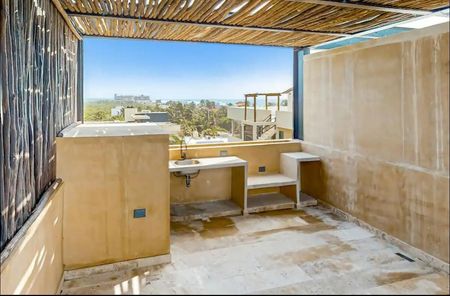 Stay in an oceanfront penthouse studio with a private jacuzzi in Bahía Tankah, Tulum, with a monthly rate far below market value and more affordable than most options in the Riviera Maya.