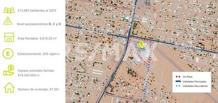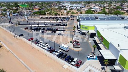 La plaza se ubica al oeste de la ciudad de San Luis Rio Colorado, en el punto estratégico donde convergen Calzada Monterrey y Ave. Nuevo León, un área de la ciudad con gran potencial de crecimiento, rodeada por una alta densidad de población, además es un punto cercano a las principales rutas que la comunican con el valle de San Luis y sus poblados cercanos, en el sector se han instalado reconocidas marcas y empresas nacionales y locales.