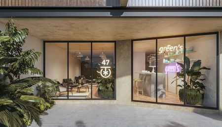 Coworking space en planta baja con aire acondicionado y barra de cafe y wifi