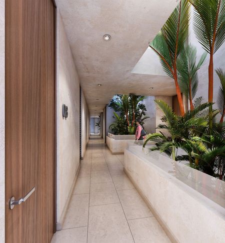 MONNE es un desarrollo de 75 departamentos, acomodadas en 2 torres gemelas que convergen en una zona de áreas comunes. El desarrollo ofrece 6 diferentes modelos entre estudios, pent house con roof garden y departamentos de 1 a 2 habitaciones, distribuidos en 5 niveles mas una terraza al aire libre.