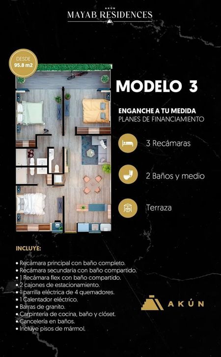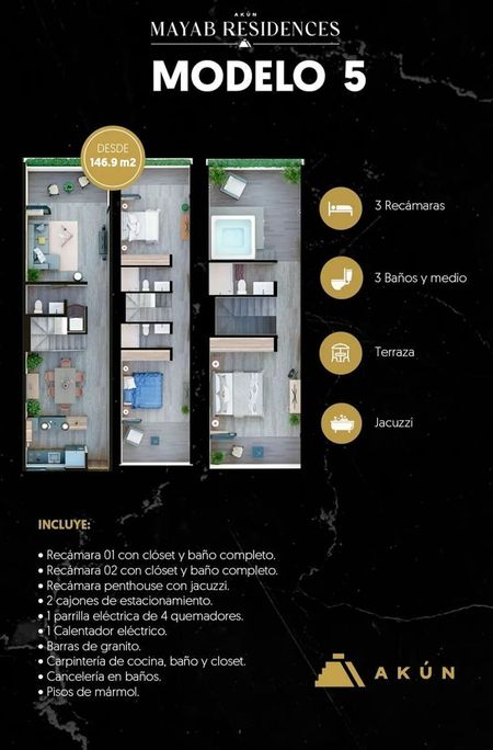 Departamentos de 2 y 3 recámaras, Penthouse de 3 recámaras y Jacuzzi.