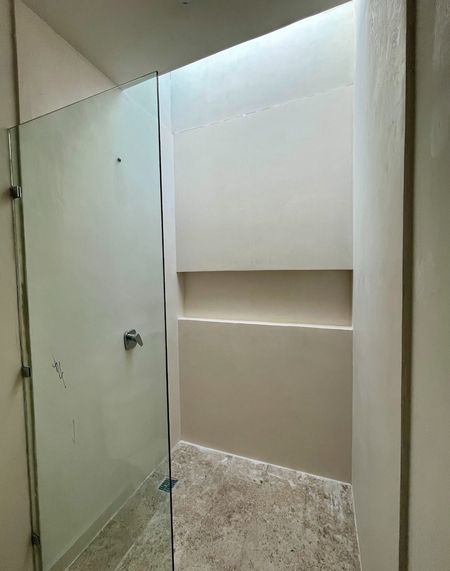 • Canceles de vidrio fijo en regaderas sujetados con pipetas muro a vidrio, incluye silicon anti-hongos.