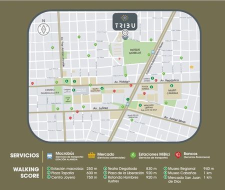 A pocos minutos de puntos importantes puntos icónicos de nuestra ciudad como: Instituto Cultural Cabañas, Teatro Degollado, Catedral y más.