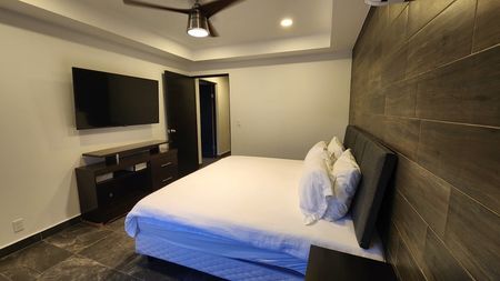 A usted y a sus huéspedes les encantará la espaciosa terraza en el rooftop con una alberca comunitaria y una zona de estar, perfecta para entretenerse en días calurosos o para noches relajadas. También ofrece vistas panorámicas impresionantes de la ciudad. El complejo es seguro y cuenta con acceso controlado y estacionamiento subterráneo.