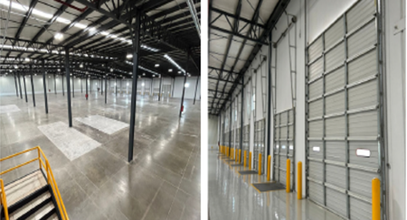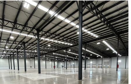 Muros tilt up, altura máxima 8 mts, luz natural 5%, colchoneta térmica en techo KR-18, sistema contra incendios.
