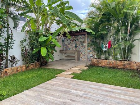 Patio trasero con Terraza, área Social de Bar,asador y Jardin
