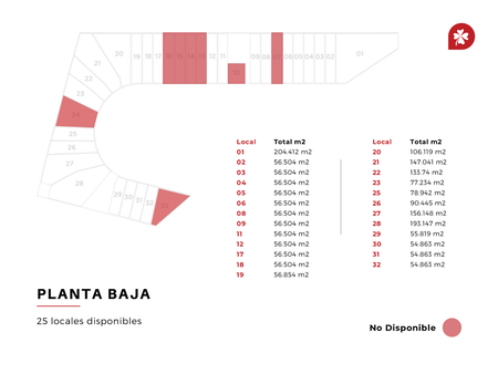 - 19 locales para Restaurantes (2,980 m2)