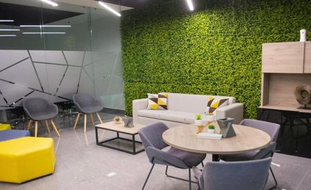 Moderna oficina acondicionada con vista interior, ubicada en uno de los edificios corporativos más exclusivos de Querétaro: Orbit Corporate Center.