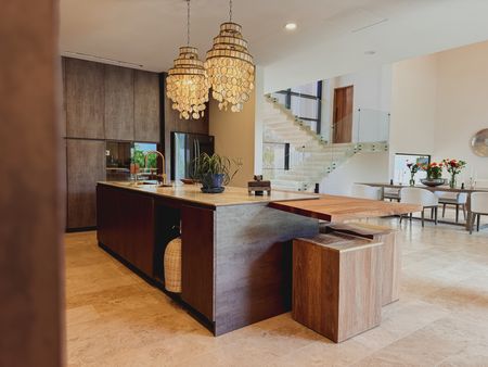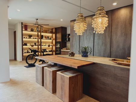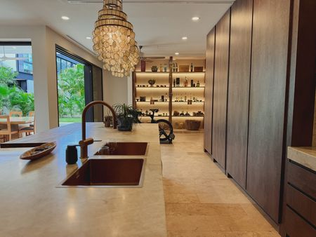 • Cocina amplia con isla, área de alacena y acceso independiente desde cochera.