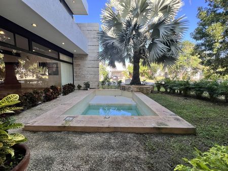 Esta propiedad se encuentra dentro de una de las privadas del YCC, ubicada en esquina. Al ingresar por la puerta principal de 2 metros de altura completamente de madera, encontrarás un área abierta donde esta, el recibidor, la sala, comedor y cocina con alacena, en esta área también hay una cava. Al salir por la cocina puedes ir al cuarto de servicio con baño completo y área de la alberca y jardín. Por el área del garage puedes ingresar a la cocina, también una bodega en esta área.