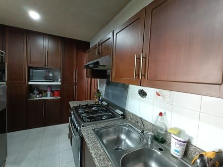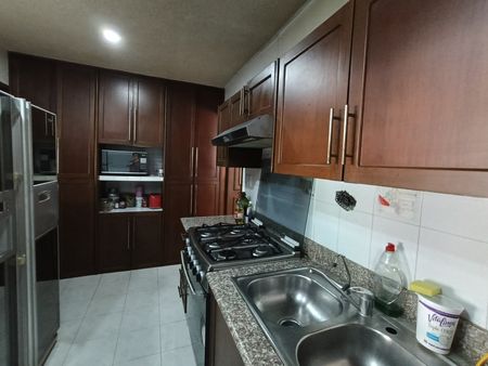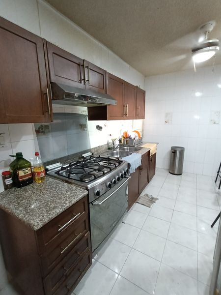 Cocina equipada con gabinetes y con acceso al comedor y a pasillo hacia el área social