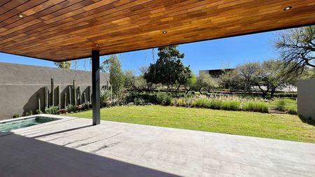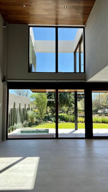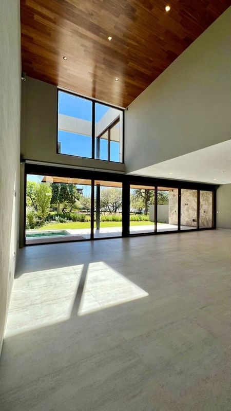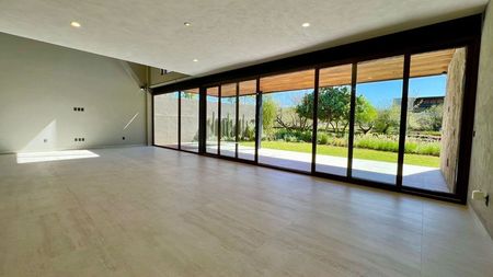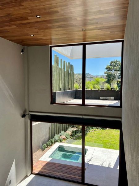 En la planta baja, encontrarás un estacionamiento techado para 4 automóviles, jardines frontales diseñados por una reconocida firma de paisajismo y una habitación con vestidor y baño completo. También podrás disfrutar de una sala a doble altura y un amplio comedor con vistas espectaculares a la naturaleza.