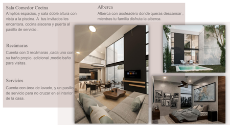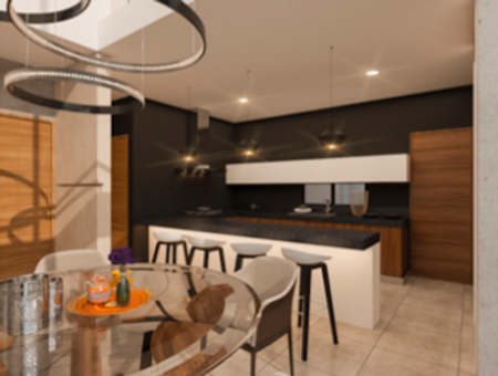 Residencias de arquitectura moderna y luminosa , con elegante sala comedor a doble altura, con amplios ventanales con vista al jardín y piscina.