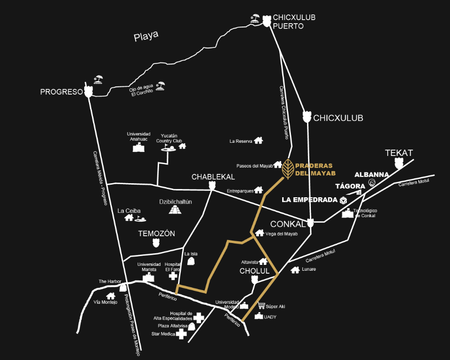 Se ubica en la privada Praderas del Mayab en Carretera Chicxulub-Mérida a 10 minutos de la playa.