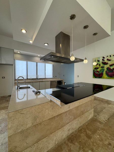 • Amplia cocina integral con gabinetes de vidrio templado y acero inoxidable