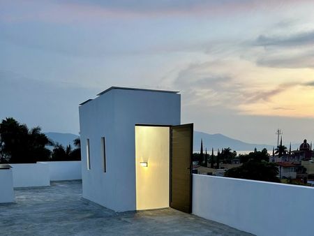 A modern new home with 10-foot-high ceilings, giving it a very cool feel, and a rooftop terrace in Riberas del Pilar, Chapala, Jalisco.