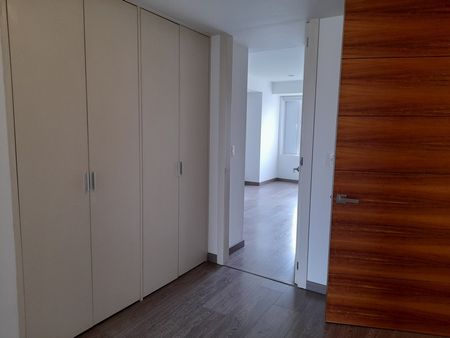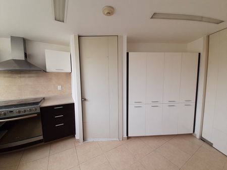 180 m2. 3 recámaras cada una con baño y vestidor. Sala y comedor con vista al jardín principal. Medio baño de visitas. Cocina integral con alacena, cuarto de servicio con baño, cuarto de lavado. Tres estacionamientos. 2 Bodegas. 2 elevadores principales. 1 elevador de servicio. Acabados en madera y mármol.