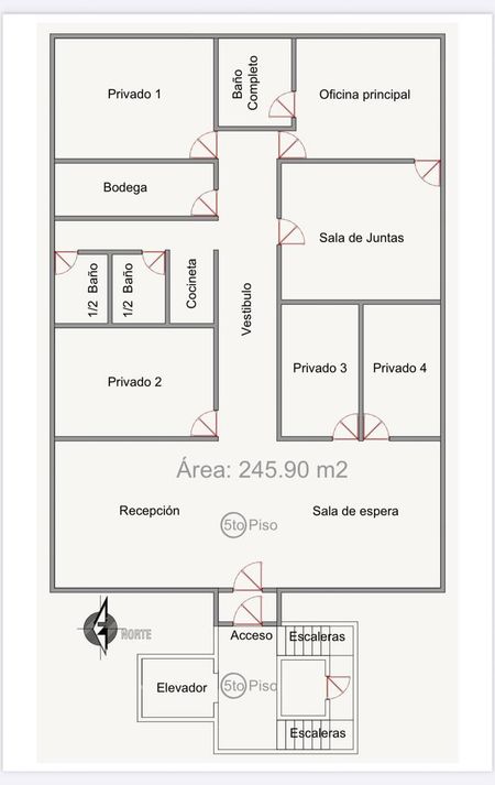 Se rentan oficinas en 5 piso en edificio con elevador, 246 M2 y cuenta con 5 privados, amplia sala de juntas, recibidor, sala de espera, tres medios baños, área de cocineta, bodega, dos cajones de estacionamiento. El precio de renta incluye agua potable y mantenimiento del elevador. Se renta con el requisito de contratación de proteccion de servicio de Rentas OK.
