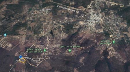 En Venta , sobre carretera a Vicente Guerrero , después del club campestre, continúas el camino hacia la nueva colonia llamada Villahermosa , este terreno esta a una lado del fraccionamiento campestre Monte Cristo, con posibilidad de agua en el subsuelo.