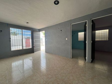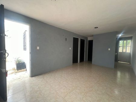 Distribución de Dos habitaciones | Baño completo | Sala comedor | Cocina | Pasillo lateral | Atrás área para amplio patio de servicio | Adelante espacio para dos autos ó área de Jardín con Cochera