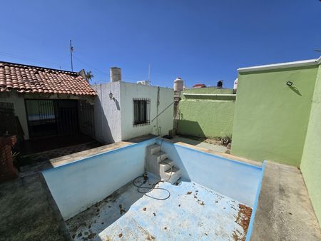 Cuenta con porche techado y reja, sala comedor corrido ampliados, cocina vestida, terreno de 8x25, PISCINA, 2 recamaras y 2 baños completos.