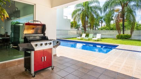 Casa moderna con alberca privada, tina de hidromasaje y jardín amplio