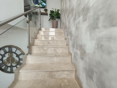En PB, Cocina equipada, Sala-Comedor con acceso al jardín trasero donde se encuentra el cuarto de lavado y medio baño con accesorios en mármol.